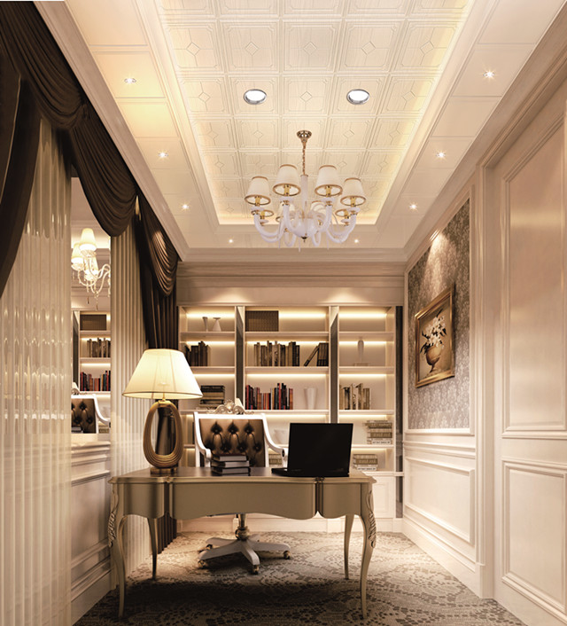 歐式風(fēng)格的書房,在家具上的選擇一些具有“歐味”的書柜和工作臺,再配以西洋油畫、水彩畫和雕塑等也能增強歐陸風(fēng)情,如女體像柱、繪畫雕塑、裝飾假面以及圓形或橢圓形雕飾等圖案。在這樣的書房辦公,會不會事半功倍呢?