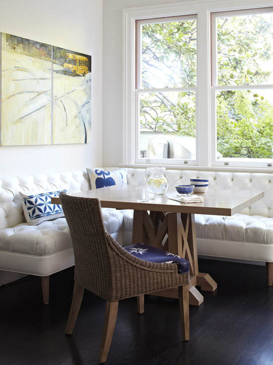 小編推薦:柔軟的座位擁有客廳沙發(fā)般的舒適享受,木質的餐桌散發(fā)著田園的自然味道,窗外綠枝婆娑,如果還覺得單調一副小掛畫即可以給空間不同感覺。