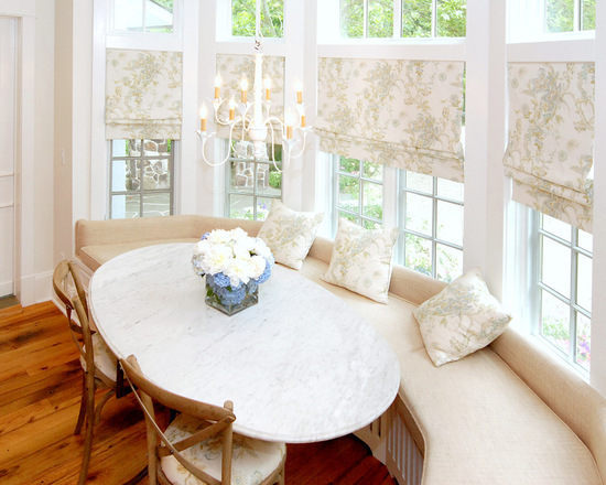 小編推薦:見慣了方正的設計,圓弧形的卡座似乎讓人耳目一新,清新的碎花窗簾搭配暖意洋洋的米色卡座沙發(fā),家居的怡人清涼十足。