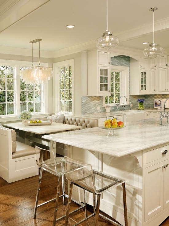 小編推薦:大戶型的廚房里擠進一個卡座餐廳,歐式的垂懸吊燈讓生活的浪漫指數(shù)直線上升,簡約不失典雅的軟包卡座透露著輕奢的雅致與高貴。