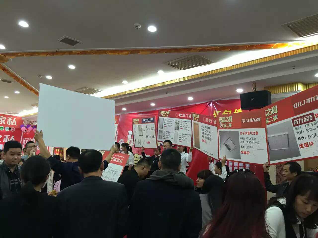活動當天,座無虛席,人潮涌動,奇力吊頂獨創性的美式風尚吊頂令人耳目一新。精致的板材、大氣的電器、優質的服務,吸引大量消費者前往展廳咨詢選購。奇力吊頂臺上激情解說,優惠的價格、獨特的風格、精美的獎品,更是引發了全場消費者的熱情,紛紛使出洪荒之力挑選購買。