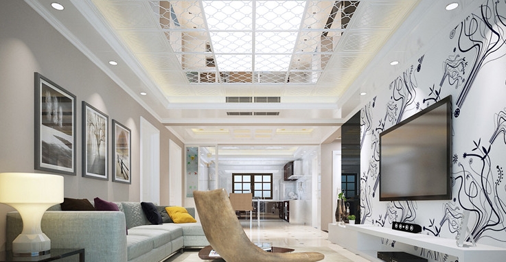 頂部扣板上令人神往的圓潤皎潔月盤,好似流轉(zhuǎn)的光陰,散逸出動(dòng)人的風(fēng)采。整體暖黃的布局,給客廳籠罩上一層溫馨氛圍。