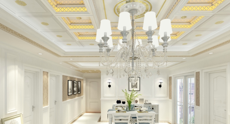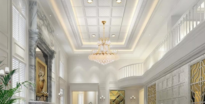 挑高客廳的空間大,如果頂部裝飾少,會顯得很空洞??梢栽陧敳垦b上集成吊頂,來彰顯你的品味。注意在選擇集成吊頂的時候要和家中的整體風格進行匹配。