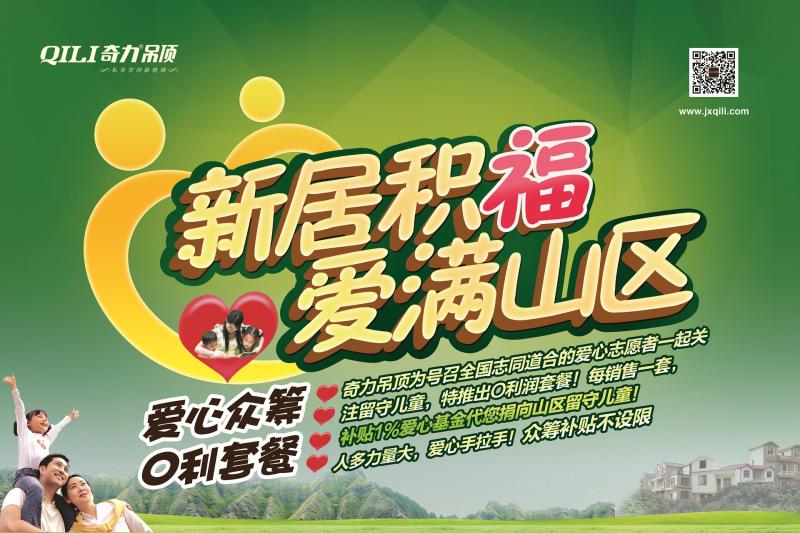 自“新居積福,愛(ài)滿山區(qū)”浙江站啟動(dòng)之后,仙居、金華、永康、安吉等多地已如火如荼展開了活動(dòng)推進(jìn),關(guān)注5800萬(wàn)山區(qū)留守兒童,愛(ài)心傳遞,奇力吊頂新加盟常山店,接過(guò)接力棒,“新居積福...