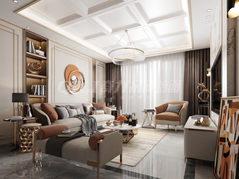 輕奢客餐廳橢圓形蜂窩大板吊頂